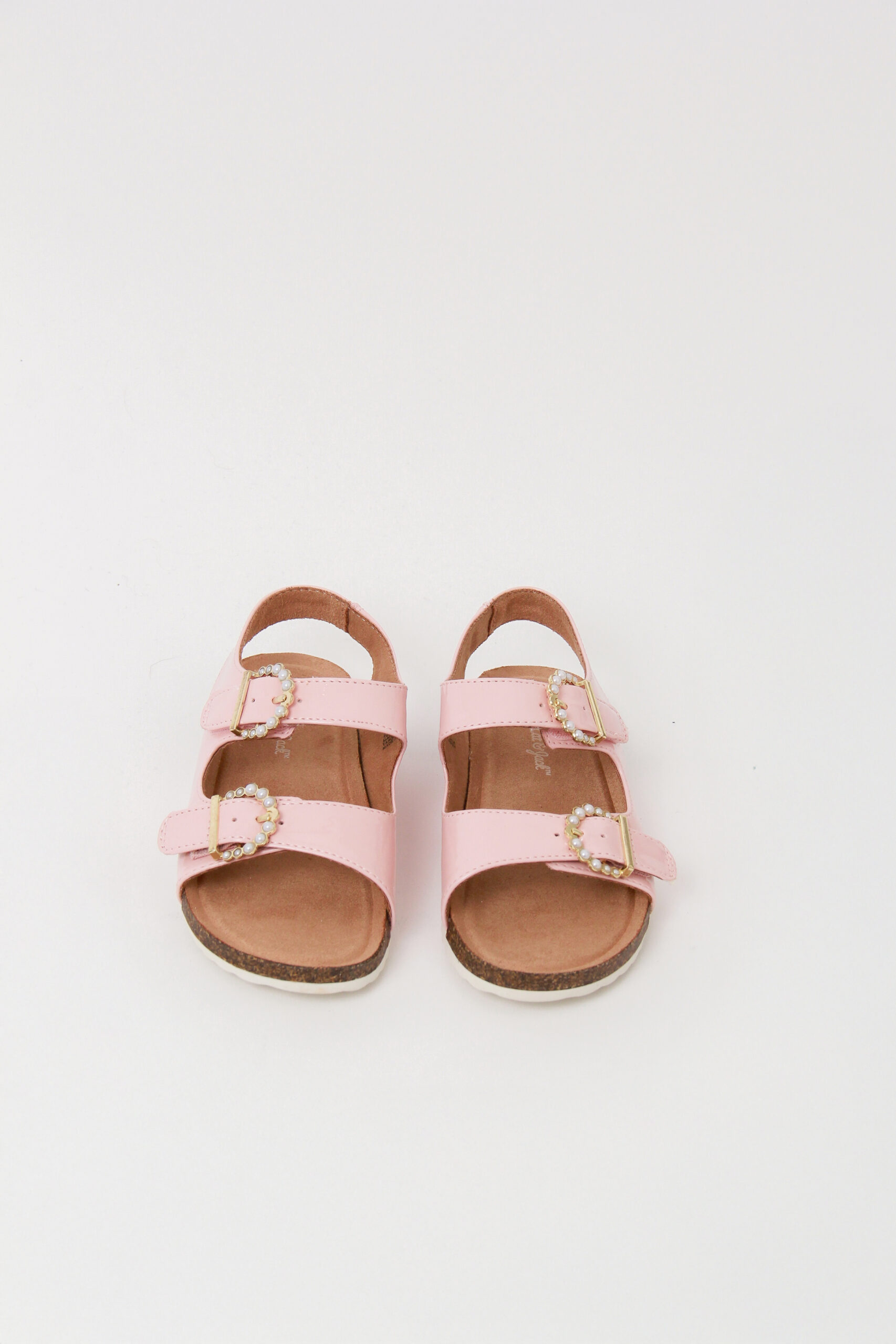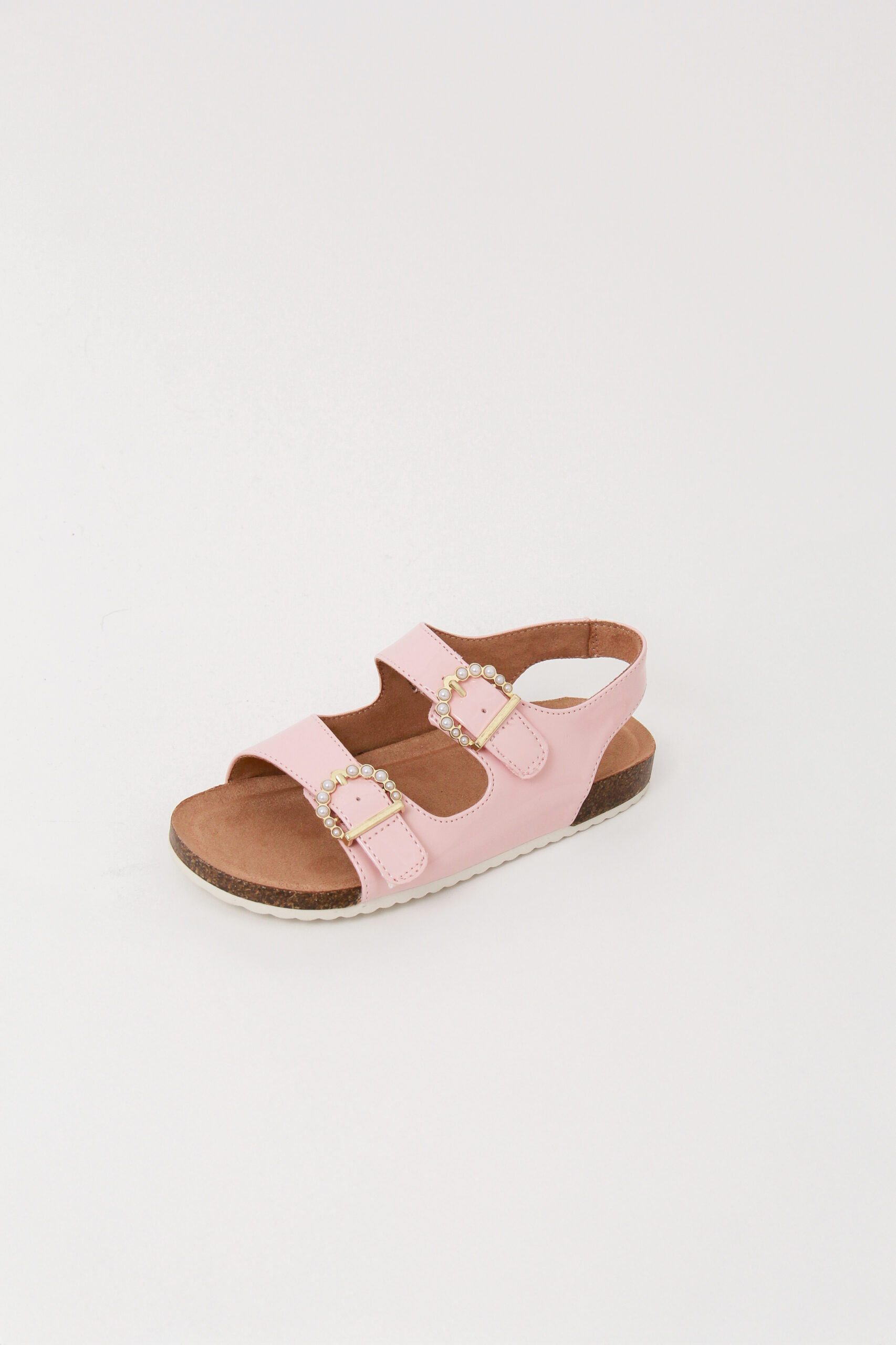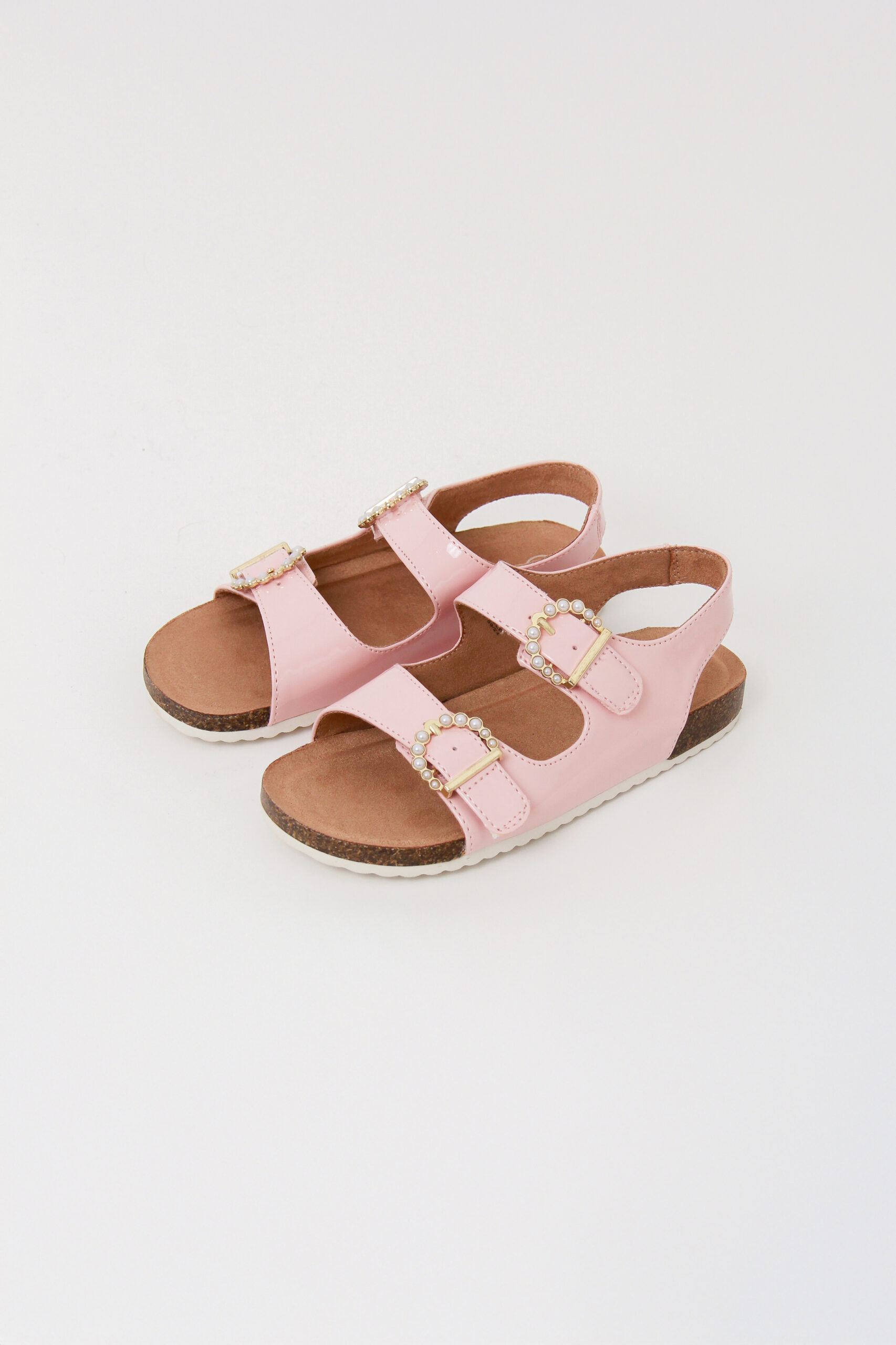 Sandalia para niña,  multicolor con brillos y rosa con broche de perlas