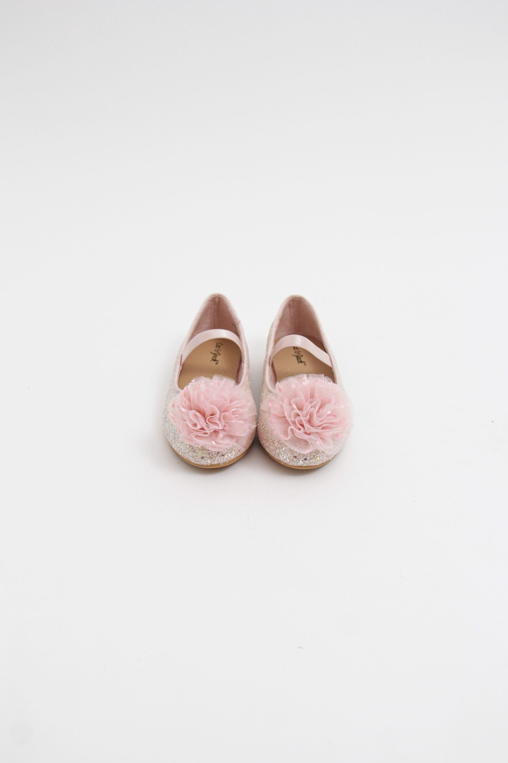 FLAT PARA NIÑA CON FLOR DE TUL CON BRILLOS